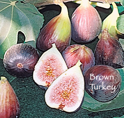 Large, purplish-brown figs with sweet, juicy, strawberry-red flesh. Harvest August to October in Central California. Naturally small (semi-dwarf) tree. 100 hours. Self-fruitful.