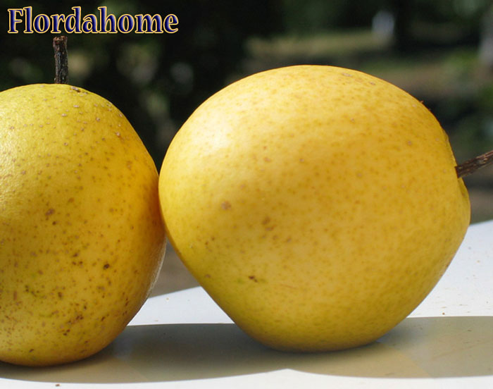 Low-chill pear from Florida. Very nice quality: sweet, smooth-textured, juicy, flavorful. Harvest July/August in southern California. Early bloom. Chilling requirement less than 400 hours. Partly self-fruitful.