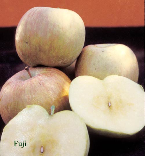 Recent introduction from Japan that quickly became California's favorite apple. Sweet, very crisp and flavorful, excellent keeper. Dull reddish-orange skin, sometimes russeted. Ripe mid-September. Excellent pollenizer for other apple varieties. Chilling requirement apparently less than 600 hours. Self fruitful.
