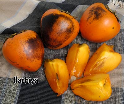 Larger, not so flat as Fuyu. Crunchy when ripe like Fuyu. Sweet, flavorful, non-astringent. Easy to grow, cool or hot climates. Fall harvest. 200 hours. Self-fruitful.