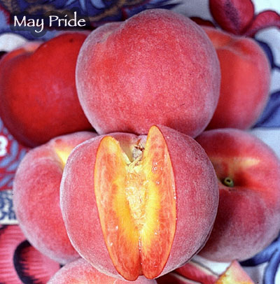 Very early: May in So. Calif./Ariz. Tree-ripened fruit has good flavor and sweetness for such an early variety. Yellow clingstone. Heavy bearing. 250 hours. Self-fruitful.